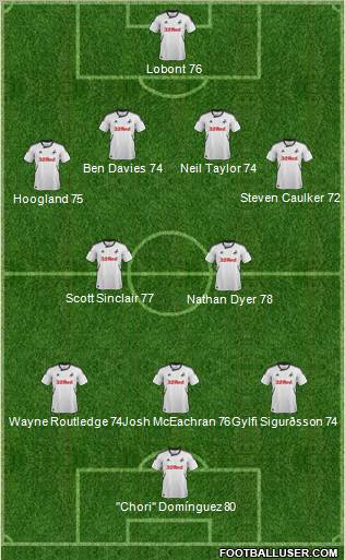 Vorm · A. Rangel · Ashley Williams · S. Caulker · Neil Taylor · J. Allen · L. Britton · S. Sinclair · G. Sigurdsson · N. Dyer · D. Graham