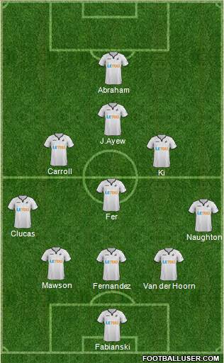 Abraham · Routledge · Ayew · Fer · Carroll · Mesa · Naughton · Olsson · Mawson · Fernandez · Fabiański