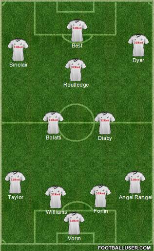M. Vorm · A. Williams (C) · S. Caulker · N. Taylor · Ángel Rangel · L. Britton · N. Dyer · W. Routledge · S. Dobbie · D. Graham · S. Sinclair