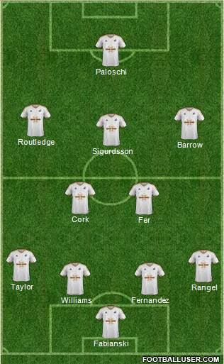 Fabianski · Ràngel · Williams · Taylor · Fernández · Cork · Britton · Montero · Sigurdsson · Routledge · Ayew