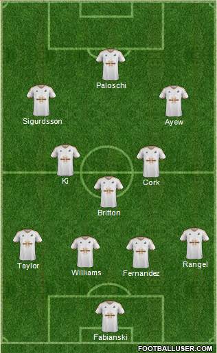 Fabianski · Fernandez · Williams · Taylor · Rangel · Cork · Fer · Ki · Routledge · Sigurdsson · Paloschi