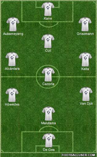 De Gea · Malutama · Höwedes · Van Djik · Cazorla · Alcántara · Keita · Özil · Aubameyang · Griezmann · Kane