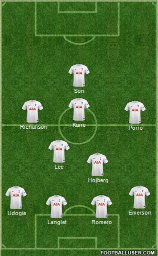 Sonminhyuk · Johnson · Maddison · Bergvall · Solankane · Gray · Porro · Udogie · Vandeven · Dragusin · Vicario