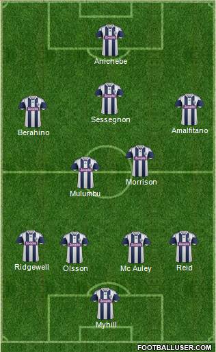 Myhill · Olsson · McAuley · Ridgewell · Reid · Yacob · Mulumbu · Sessegnon · Brunt · Amalfitano · Long