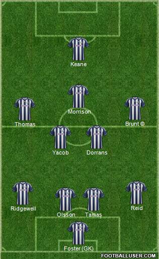 Foster (GK) · Olsson · Tamaș · Ridgewell · Reid · Yacob · Dorrans · Thomas · Brunt © · Morrison · Keane