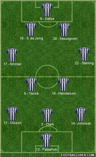 Foster · Olsson · O'Neil · Tamas · Jones · Mulumbu · Dorrans · Morrison · Odemwingie · Brunt · Lukaku