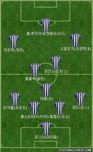 Foster · McAuley · Reid · Olsson · Ridgewell · Mulumbu · Yacob · Fortune · Dorrans · Morrison · Long