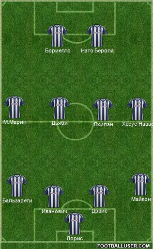 Ben Foster · Liam Ridgewell · Jonas Olsson · Billy Jones · Gonzalo Jara · Youssuf Mulumbu · Claudio Yacob · Chris Brunt · Zoltán Gera · Peter Odemwingie · Romelu Lukaku