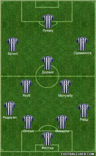 Foster · Tamas · Olsson · Jara · Ridgewell · Mulumbu · J.Morrison · El-Ghanassy · Brunt · Odemwingie · Lukaku