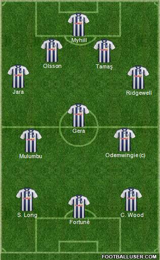 Ben Foster(1) · Billy Jones(22) · Liam Rigwell(4) · Graham Dorrans(16) · Chris Brunt(11) · Keith Andrews(8) · Craig Dawson(25) · Scott Allan(14) · James Morrison(6) · Shane Long(9) · Chris Wood(15)