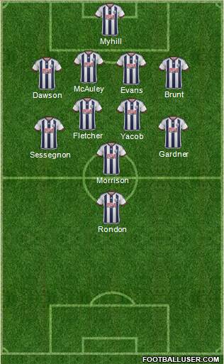 Myhill · Olsson · McAuley · Evans · Dawson · Yacob · Fletcher · McClean · Sessegnon · Gardner · Anichebe