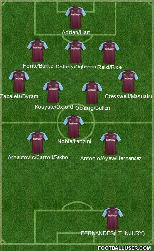 Hart · Ogbonna · Fonte · Zabaleta · Cresswell · Noble · Joao Mario · Kouyaté · Antonio · Arnautovic · Chicharito