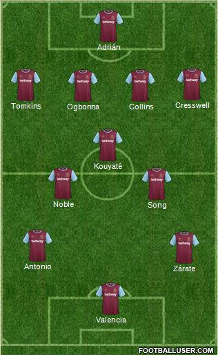 Adrián · Collins · Ogbonna · Tomkins · Cresswell · Kouyaté · Noble · Obiang · Payet · Antonio · Valencia