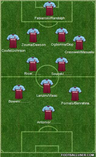 Fabiański · Dawson · Kehrer · Zouma · Cresswell · Souček · Rice · Bowen · Cornet · Lucas Paquetá · Scamacca