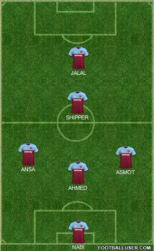 13- A. Areola · 3- A. Cresswell · 4- K. Zouma · 24- T. Kehrer · 17- S. Singo* · 28- T. Souček · 41- D. Rice · 22- S. Benrahma · 10- L. Paquetá · 20- J. Bowen · 7- G. Scamacca