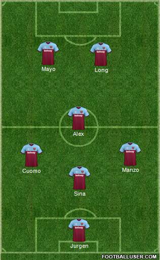 13- A. Aréola · 3- A. Cresswell · 15- C. Dawson · 24- T. Kehrer · 5- V. Coufal · 41- D. Rice · 28- T. Soucek · 8- P. Fornals · 10- M. Lanzini · 23- J. Bowen · 9- M. Antonio