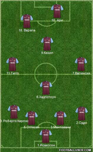 Jaaskelainen (GK) · Diarra (CB) · Collins (CB) · Taylor (LB) · O'Brien (RB) · Gabi (CMF) · Benayoun (AMF) · Nolan (AMF) · Cole (LMF) · Jarvis (RMF) · Vaz Te (CF)