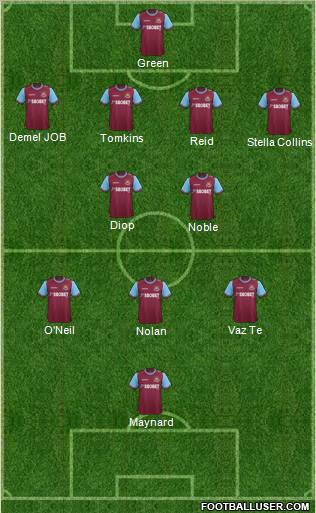 Henderson · Reid · Tomkins · Demel · O'Neill · Noble · Collison · Taylor · Nolan · Vaz Te · Cole