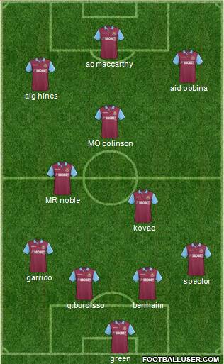 Green · Tomkins · Upson · Oztorun · Ricketts · Hitzlsperger · Parker · Ba · Barrera · Hines · Cole