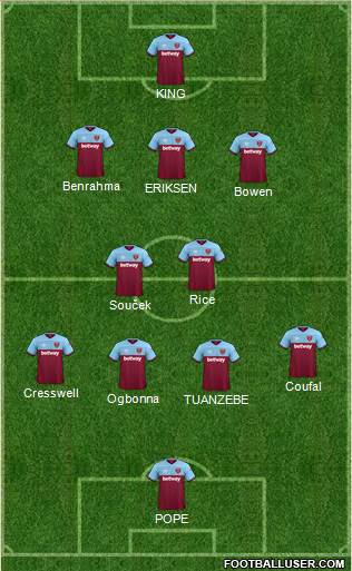 Fabianski · Diop · Cresswell · Ogbonna · Dawson · Coufal · Masuaku · Souček · Rice · Fornals · Yarmolenko · Benrahma · Bowen · Lanzini · Antinio · Yaremchuk · P.Daka · A.Sima · A.Hložek · J.Lingard · R.Tapia · A.Kral · J.Williams · R.Aguilar · D.Zima · D.Duarte · P.Gazzaniga