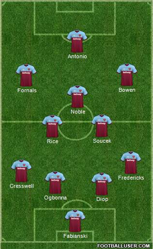 fabianski · creswell · ogbonna · balbuena · Johnson · coufal · rice · soucek · lanzini · Bowen · yarmalenko