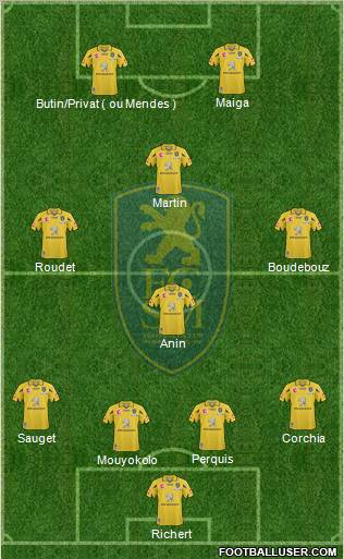 Richert · Mouyokolo · Perquis · Sauget · Corchia · Anin · Roudet · Boudebouz · Martin · Butin/Privat ( ou Mendes ) · Maiga