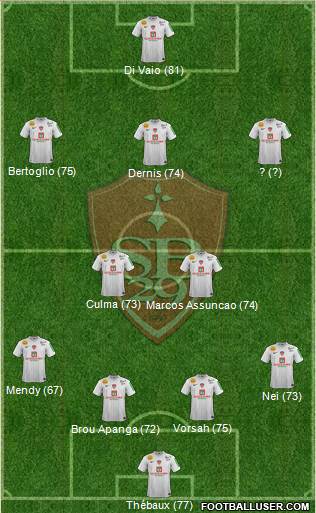 Thébaux (74) · Vorsah (70) · Manolas (75) · Adi (73) · Nei (73) · Assuncao (73) · Grougi (72) · Lesoimier (72) · Rajtoral (76) · Di Vaio (79) · Diego Tardelli (76)