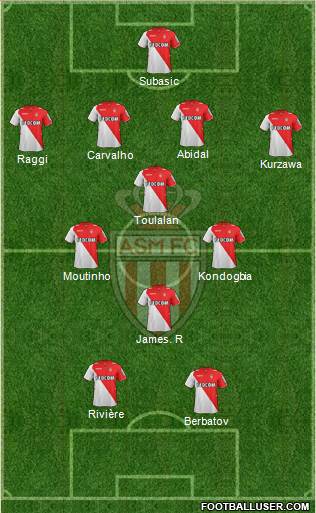 Subasic · Abidal · Carvalho · Raggi · Kurzawa · Kondogbia · Moutinho · Obbadi · James · Martial · Riviere