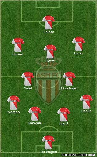 S.Romero · R. Carvalho CT · Abidal CT · Fabinho LD · Kurzawa LI · Toulalan MCD · Obbadi MC · Joao Moutinho MC · James Rodriguez SD · Rivière SD · Falcao DC