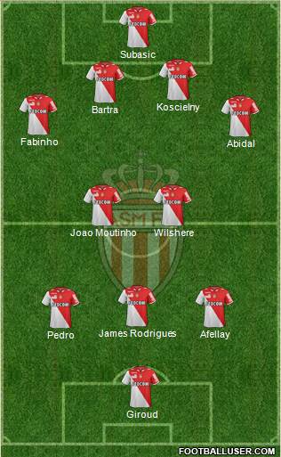 Falcao · Ferreira/Ocampos · James Rodriguez · Moutinho · Kondogbia · Toulalan · Kurzawa · Fabinho · Carvalho · Abidal · Romero/Subasic