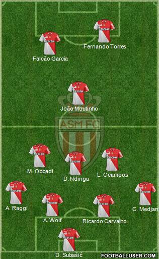 Falcao / Martial · James Rodríguez / Dirar · Hulk* / Ferreira-Carrasco · Moutinho / Ocampos · Toulalan / J.Poulsen · Ndinga / Obbadi · Abidal / *Digne · Kagelmacher / Raggi · Carvalho / Wolf · Isimat-Mirin / Medjani · Subasic / Roma