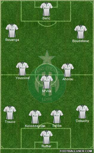 Ruffier · Kolodziejczak · Saliba · Trauco · Debuchy · M'Vila · Aholou · Youssouf · Boudebouz · Bouanga · Beric