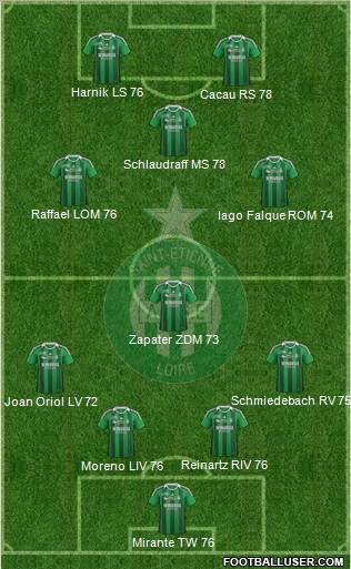 Ruffier ( 84 ) · Bayal Sall ( 75 ) · Martial ( 70 ) · Rafael ( 78 ) · Corchia ( 77 ) · Chantome ( 78 ) · Lemoine ( 77 ) · Sergio Canales ( 78 ) · Gradel ( 78 ) · Aubameyang ( 78 ) · Pasquale ( 79 )