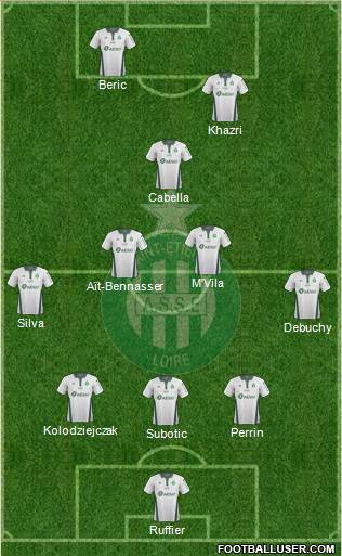 Ruffier · Kolodziejczak · Perrin · Debuchy · Silva · Aït-Bennasser · M'Vila · Cabella · Salibur · Monnet-Paquet · Khazri