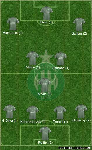 Ruffier · Kolodziejczak · Perrin · Debuchy · G.Silva · M'Vila · Selnaes · Dioussé · Salibur · Cabella · Khazri