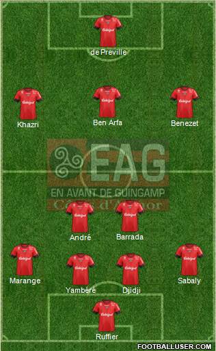 Jonas LOSSL 1 · Christophe KERBRAT 29 · Jérémy SORBON 15 · Dorian LEVEQUE 7 · Lars JACOBSEN 2 · Lionel MATHIS 18 · Younousse SANKHARE 13 · Marcus COCO 24 · Nicolas BENEZET 10 · Jimmy BRIAND 23 · Sloan PRIVAT 11