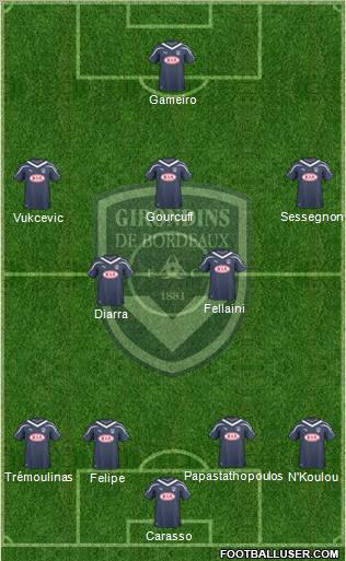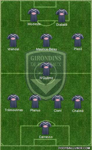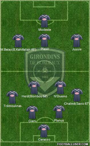 Carrasso · Marc Planus · Tremoulinas · Ciani · Chalme · Mikel · N'Guemo · Sertic · Wendel · Gouffran (C) · Ferreira Vieira