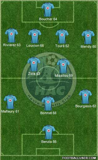 Boucher 64 · Rivierez 63 · Louvion 66 · Touré 62 · Mendy 65 · Zola 63 · Missilou 59 · Bourgeois 62 · Mafleury 61 · Bonnet 68 · Benzia 66