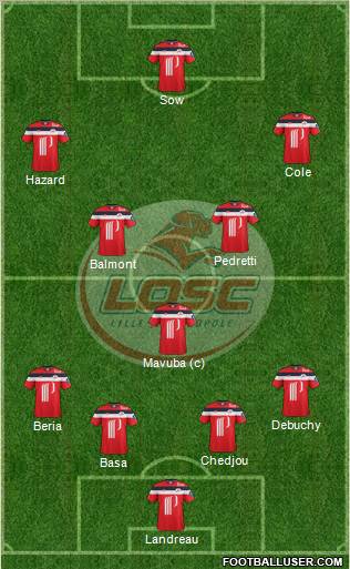 Landreau [80] · Chedjou [79] · Basa [77] · Béria [76] · Debuchy [77] · (c) Mavuba [81] · Balmont [78] · Pedretti [80] · Payet [79] · Hazard [86] · Sow [83]