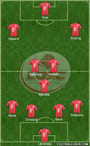 G : Landreau · DC : Chedjou · DC : Rozenhal · AD : Debuchy · AG : Emerson · MG : Obraniak · MD : Mavuba · MC : Balmont · AT.D : De Melo · AT.G : Hazard · AT.P : Gervinho