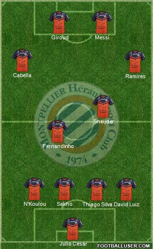Julio Cesar · Thiago Silva · David Luiz · N'Koulou · Sakho · Fernandinho · Sneijder · Ramires · Cabella · Giroud · Messi