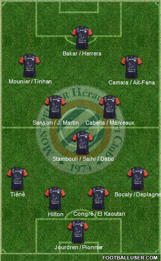 Jourdren / Pionnier · Hilton · Congré / El Kaoutari · Tiéné · Bocaly / Deplagne · Stambouli / Saihi / Dabo · Sanson / J. Martin · Cabella / Marveaux · Camara / Ait-Fana · Mounier / Tinhan · Bakar / Herrera