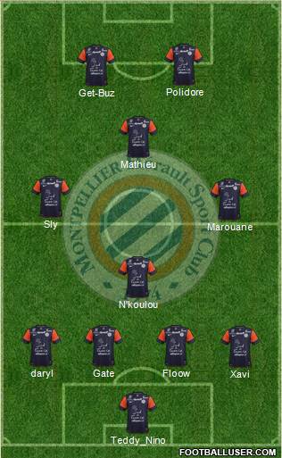 9 Charbonnier · 20 Cabella · 8 Mounier · 7 Utaka · 23 Saihi · 10 Belhanda © · 5 Bedimo · 2 Bocaly · 12 Congre · 4 Hilton · 16 Joudren