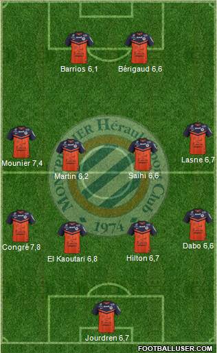 Jourdren 6 · 7 · El Kaoutari 6 · 8 · Hilton 6 · 7 · Congré 7 · 8 · Dabo 6 · 6 · Martin 6 · 2 · Saihi 6 · 6 · Mounier 7 · 4 · Lasne 6 · 7 · Barrios 6 · 1 · Bérigaud 6 · 6