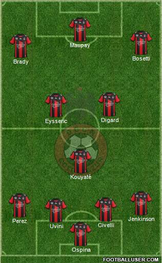Ospina · Pejcinovic · Kolodziejczak · Civelli · Puel · Digard · Anin · Bauthéac · Pied · Eysseric · Cvitanich