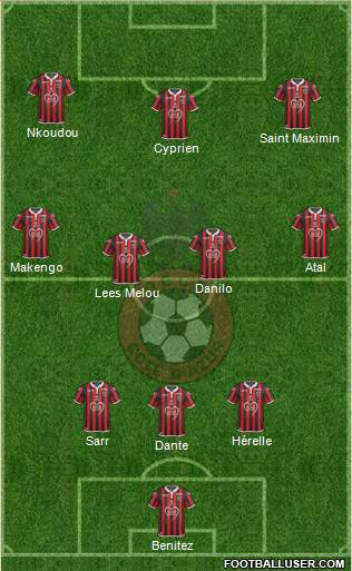 Benitez · Dante · Hérelle · Jallet · Boscagli · Lees Melou · Cyprien · Belhanda · Saint Maximin · Myziane · Germain