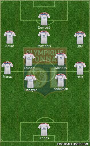 Dembélé · Traoré · Pastore · Aouar · Mendes · Tousart · Cornet · Dubois · Andersen · Denayer · Lopes