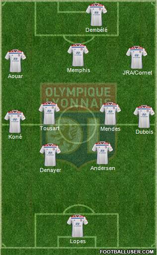 Lopes · Denayer · Andersen · Koné · Dubois · Tousart · Mendes · Aouar · Memphis · Dembélé · Terrier