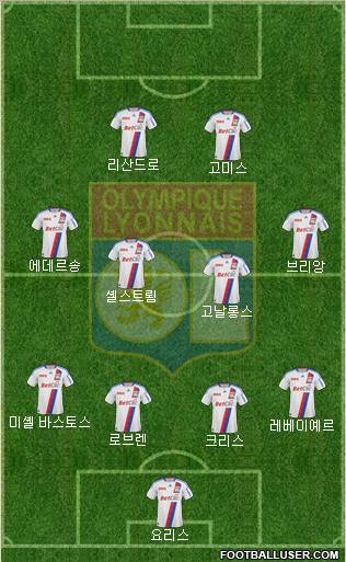 Lloris · M.Sakho · Lovren · Cissokho · Jallet · Park Ji-Sung · Gourcuff · Pjanic · Cesar Delgado · Michel Bastos · Lisandro