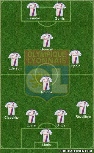 Gomis · Lisandro · Pjanic · Bastos · Gourcuff · N'Dinga · Réveillère · Cissokho · Lovren · Douglas · Lloris